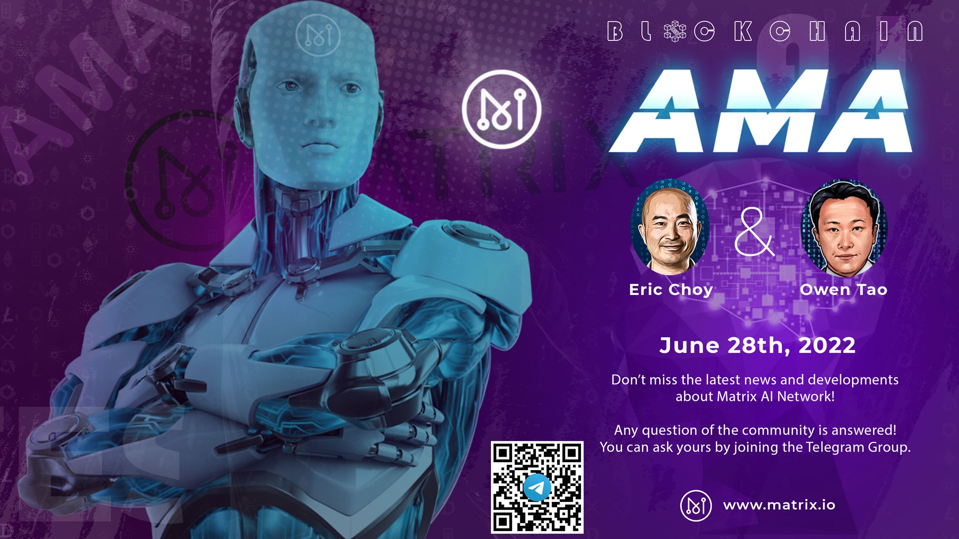 Okay good so, good that you have been released from the quarantine. And because of the Covid, our office has tons of operations on hold, and because there is a wave in Shanghai and into Beijing, I hope you guys are doing good there and stay safe. Alright so, in today's AMA we have two sections: one is we have to summarize the roadmap delivery, and then the second part will be about the questions from the community, and then addressed by our CEO Owen. So, why don't we start with the roadmap issue? Owen could you please share with us some updates about the progress of this stage five in our roadmap, could you share with us some progress? Thank you. Okay the first part, the platform for NFT trading, I think most of this part of the work has been finished. Until now I think we can support all the main kinds of blockchain platforms, NFT minting and trading. We have updated our IPFS storage and also our API for the Matrix. Now, if you keep your data and your algorithm on the Matrix IPFS, you can use it to mint NFT on any kind of the main blockchain platforms such as Ethereum, Binance Smart Chain, Solana, Polygon, or something else. And the second one is the ecosystem of NFT for trading of computing power algorithm and data. I think most of the work has been finished and until now we can support all the main blockchain platforms to mint NFT with the algorithm models and the data which have been stored on our Matrix MainNet. And also, we have already introduced one partner who will use our NFT as its main function in their project. The project's name is AIRTIST. The next part, we have already started the work to allow all kind of computing power which is not our miners, they can connect to our network. Yet, this will still take some more time to finish all the work. After that I think that all parts of this will be finished. The last part is the generalized Automatic Machine Learning. This work has been delayed the most in our stage five, but it works. I think it will be finished in July. Yeah, it will be been finished in July. Until now we have started to connect Manta with our Main Network. And during next month we will invite some partners who will use Manta and our Automatic Machine Learning platform to support their work and their business, and you will get more details in the next month. And also, now some updates about our MANAS platform. I think we will finish most of the work of MANAS this month, and then you will… The older business fee transaction and also the older accounting and billing information will be updated on our blockchain. So, you will use MANAS all based on our Matrix Main Network. Yeah, that's some updates from me and you will get more new information in the coming weeks.