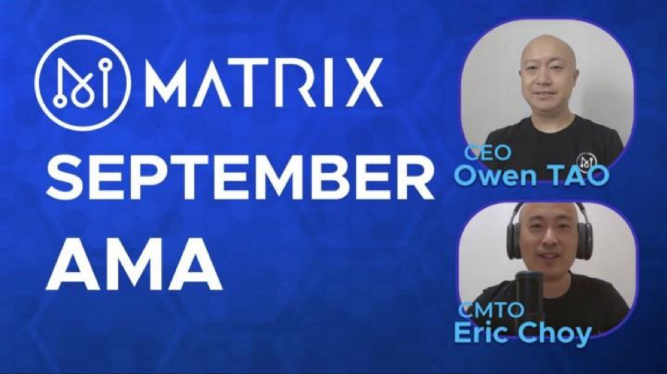 Eric : Hello, good afternoon, Matrixians. Today is the 28th of September and It’s the monthly we are having this AMA with our CEO MR.Owen TAO to provide transparency and to address specific concerns or questions coming from you. So to submit your questions from time to time so we can kind of refresh ourselves and also to address what’s needed by the community.