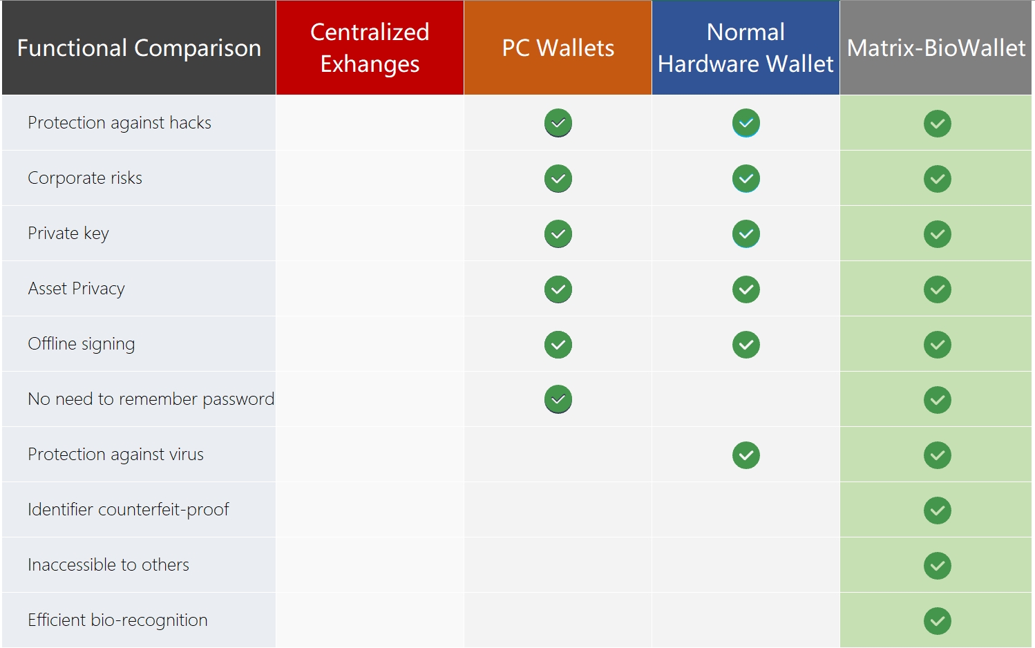 Overall, the Matrix Bio-Wallet beats other crypto wallets in security, efficiency and transaction fee rate. It is clear that the Bio-Wallet will be a crucial piece of Matrix’s ecosystem, guaranteeing a secure transaction and identification for services on Matrix platforms.