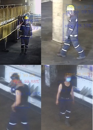 1. This feature automatically detects if workers have complied with safe clothing standards, which involves properly wearing helmets, masks, reflective work suits, etc.