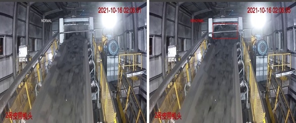 When AI detects the conveyor belt has ceased working, or that the coal storehouse entrance is stuck while the conveyor belt is still running, an alarm will trigger warning the workers on duty to take immediate action.