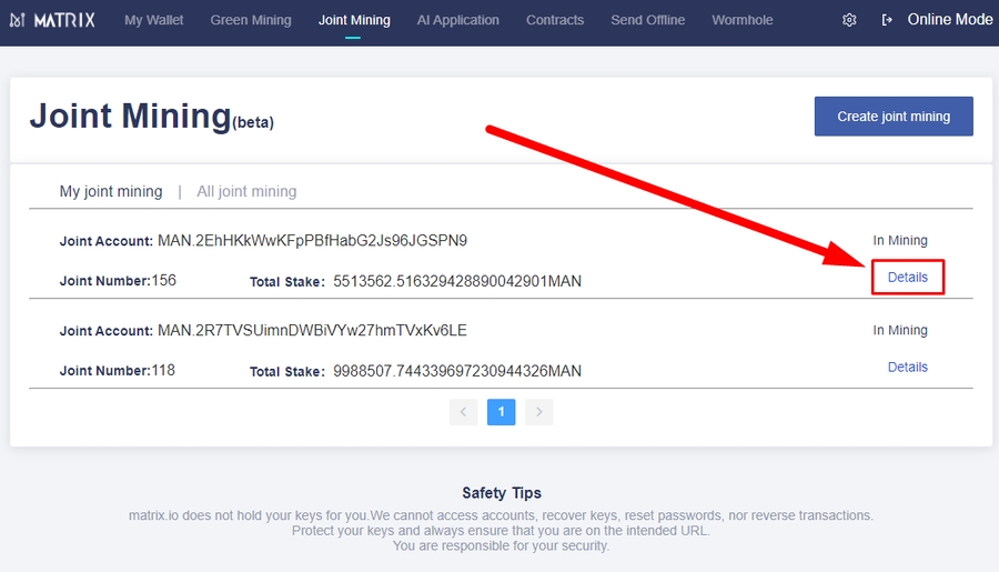 Go to the “Joint Mining” home page after opening your MAN wallet: