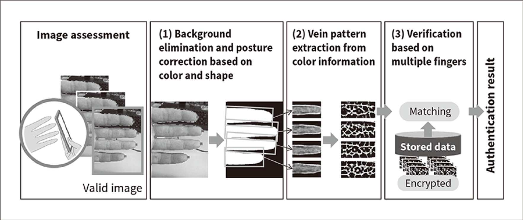 2. It uses blockchain to keep records and match finger vein data with users to whom the biometrics belongs;