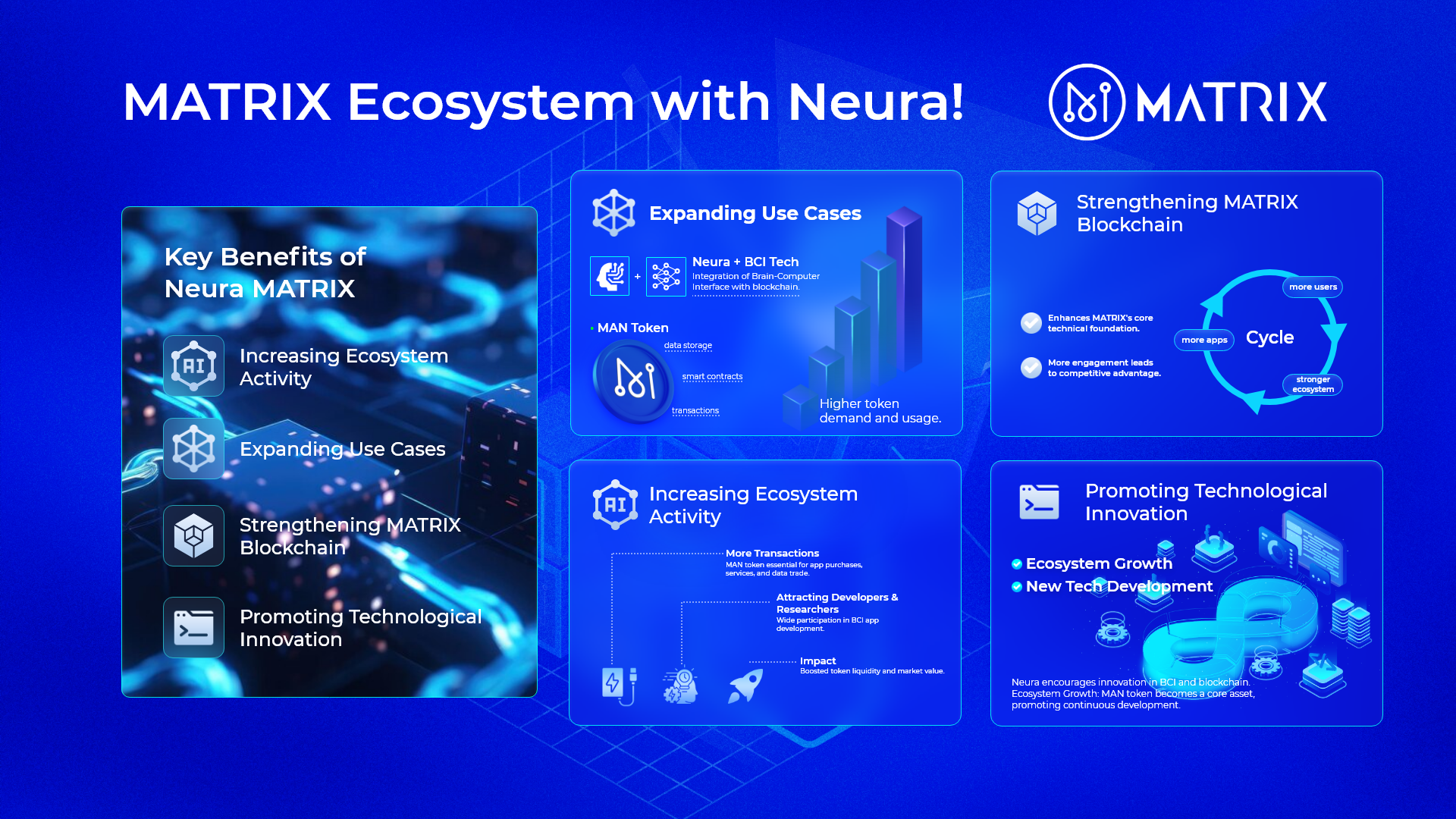 The launch of the Neura MATRIX platform is poised to have a wide-reaching and profound positive impact on the MAN token and the entire MATRIX ecosystem. These effects will not only enhance the practical utility of the token but also drive the activity and sustainable development of the ecosystem in several key areas: